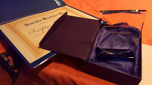 Ebben az évben kolléganőnk, a Twist Olivér Alapítvány nappali melegedőjének munkatársa, Tarcsafalvyné Sebők Magdolna vehette át a díjat.